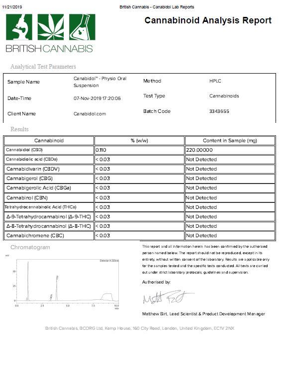 Canabidol Oral Suspension Physio 200mg CBD Oil 200ml