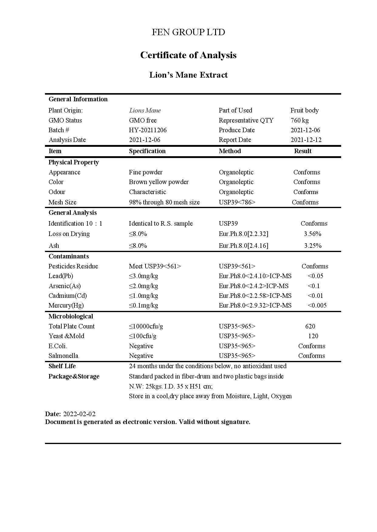 Ingredients: Lion's Mane Mushroom Extract, (30% Polysaccharides).