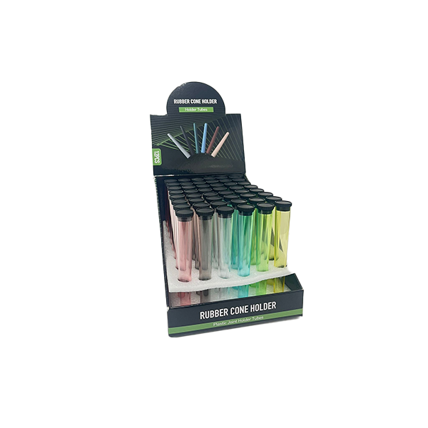 Introducing the 48x Rubber Cone Holder Container - a must-have storage solution for cone enthusiasts. With a kaleidoscope of vibrant colors including yellow, green, blue, transparent, black, and pink, this versatile tube is perfect for keeping your pre-rolled cones organized and protected. Crafted with precision and designed for the discerning smoker, this container offers both durability and style. Whether you're on-the-go or at home, this container ensures your cones stay in pristine condition and easily accessible. Made of durable rubber, it provides flexibility and protection for your cones, while adding a playful touch to your smoking accessories. For smokers who value both functionality and aesthetics, this 48x Cone Holder Container is an essential addition to their collection - offering convenience and style in one compact package.