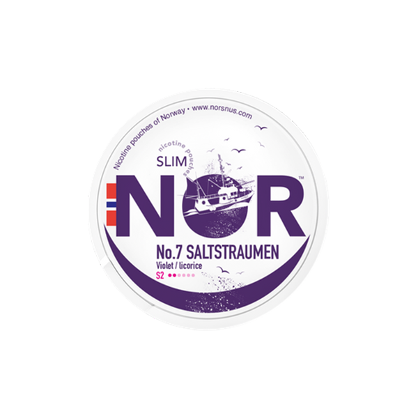 8mg NOR Slim Nicotine Pouches - 20 Pouches - Saltstraumen - Violet / Licorice is backordered and will ship as soon as it is back in stock.