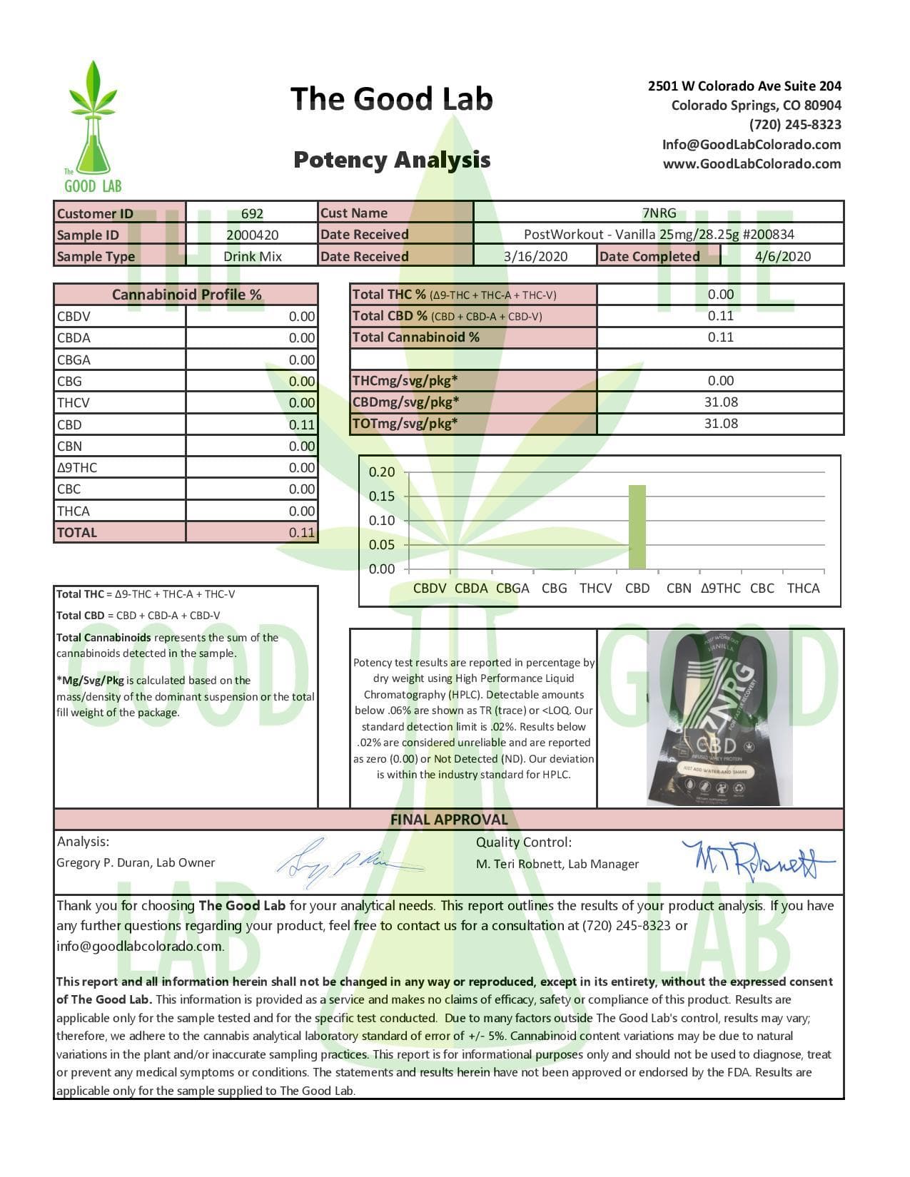 7NRG Post-workout chocolate CBD shake is made to help you achieve homeostasis by regulating your body’s endocannabinoid system. This restores balance in your central nervous system and immune system. CBD has been shown to aid muscle recovery.