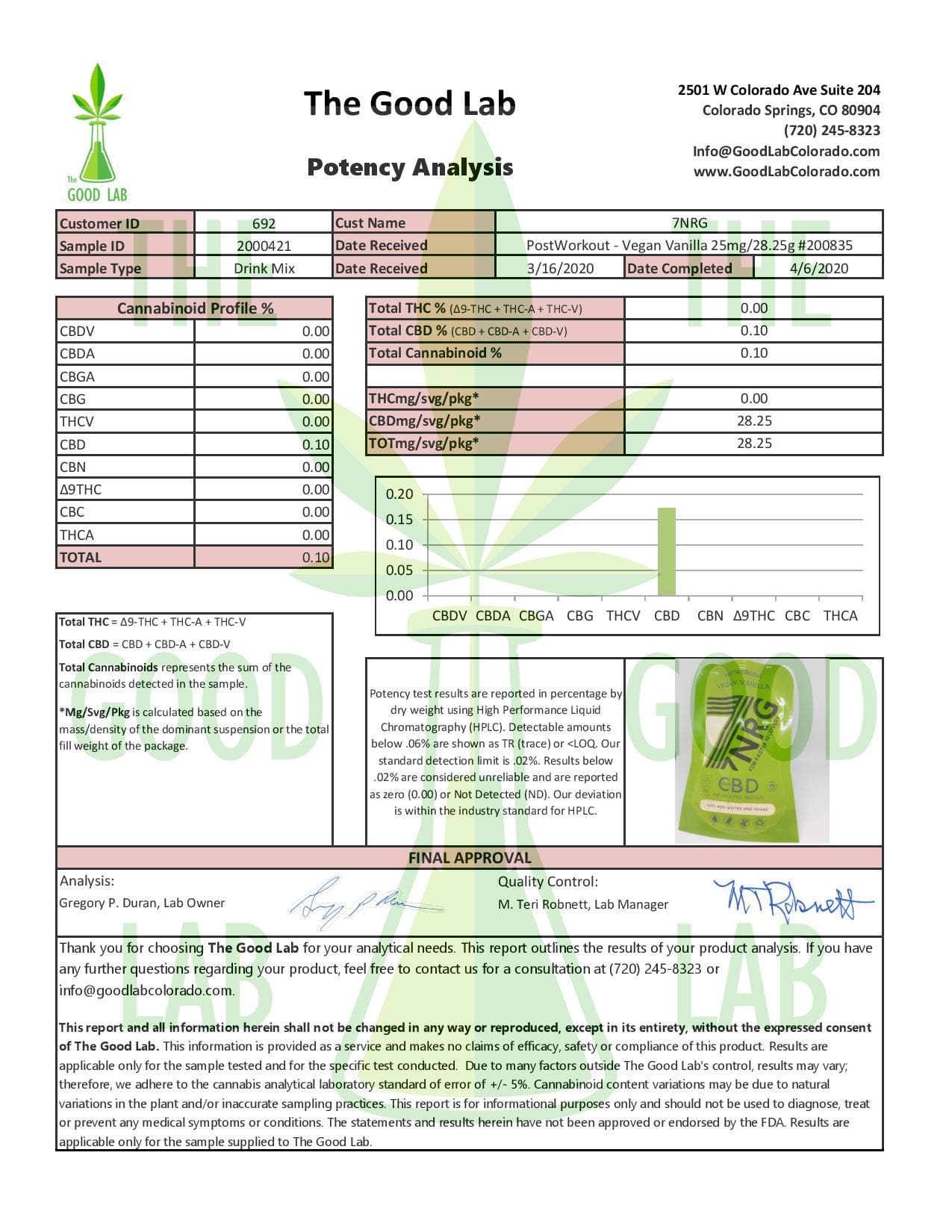 7NRG Post workout Vegan Vanilla CBD shake is made to help you achieve homeostasis by regulating your body’s endocannabinoid system. This restores balance in your central nervous system and immune system. CBD has been shown to aid muscle recovery.